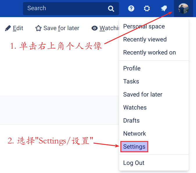 | 1 | 单击右上角个人头像 | |