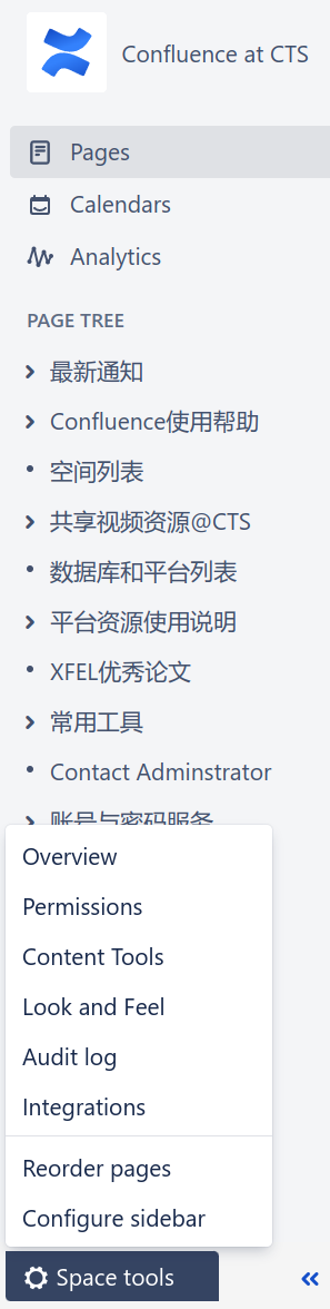 空间中的页面默认是按创建时间排序,Confluence支持自主调整页面的顺序:侧边栏下方Space tools → Reorder pages,然后通过鼠标拖拽的方式对页面进行排序。
